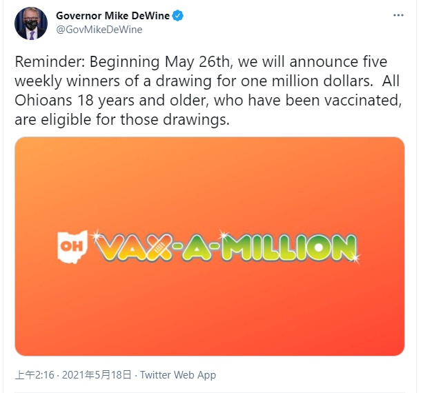 疫苗抽獎 : æ"¿é»¨ç»è¨è¾¦æ°å ç«èæ½çå© è°·é å¡é çè¨500è¬å