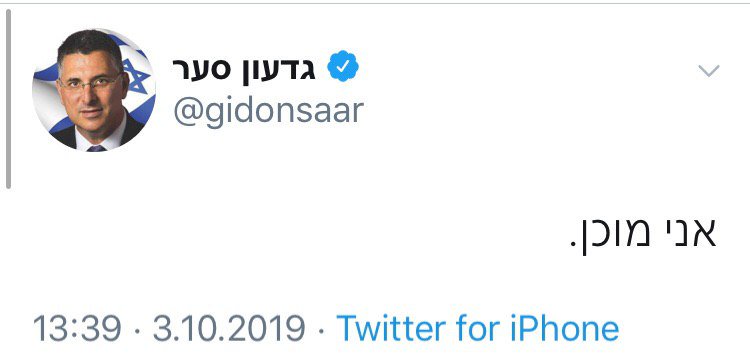 אני מוכן להקים ממשלה בתמיכת המשותפת, חבל שלא הקמנו אותה בכנסת הזו גדעון סער. לאחר פרסום הודעת הליכוד, כתב גדעון סער בחשבון הטוויטר שלו: